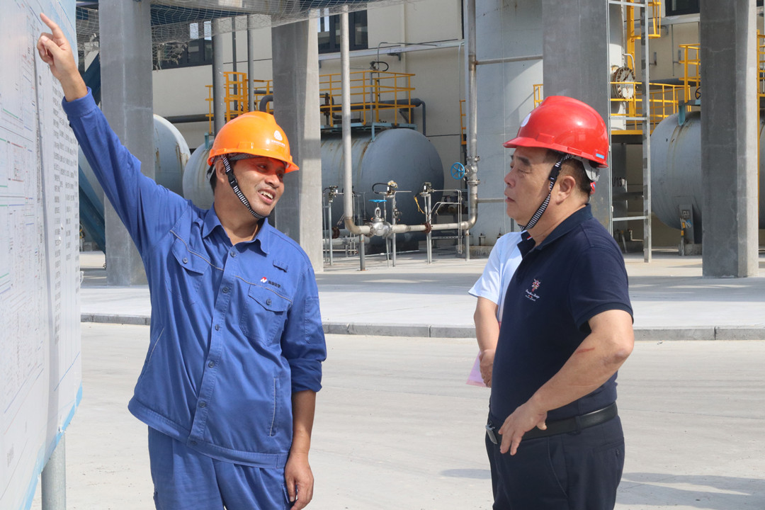 李壽發一行深入項目建設現場實地查看了項目建設進展情況,并詳細聽取了氯堿公司黨委書記、董事長陳莊善關于落實全面從嚴治黨、搬遷處置、項目建設及經營等工作的匯報。
